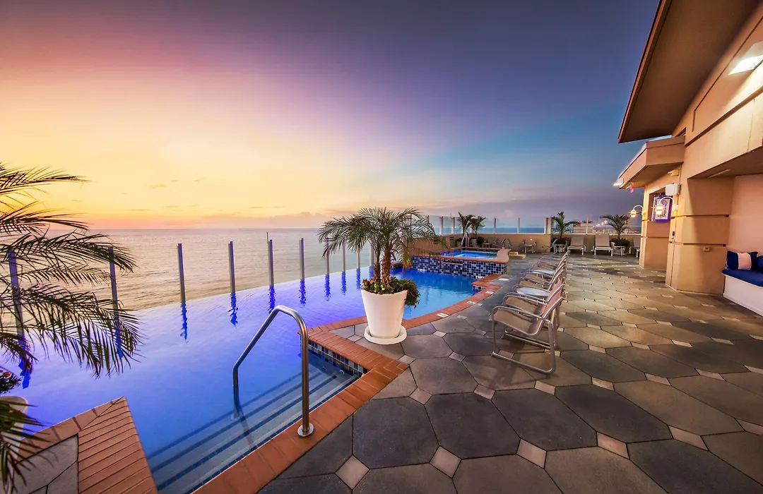 Dining options include Catch 31, known for its fresh seafood and outdoor seating, and Salacia, offering prime cuts of steak. The Sky Bar on the 21st floor provides seasonal rooftop dining experiences alongside stunning ocean views. The pool bar caters to guests with light bites and beverages during the day.