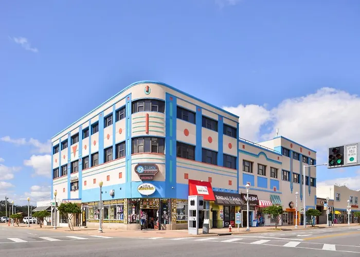 19 Atlantic Hotel, a 3-star Virginia Beach hotel, features 68 rooms with modern amenities and a rooftop terrace. Guests are steps away from beach access across the street and can enjoy nearby dining and shopping along Atlantic Avenue.